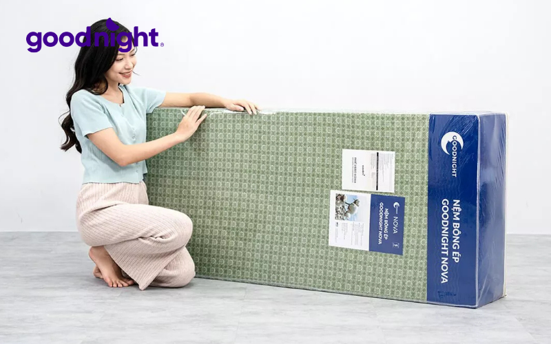 Goodnight Nova là dòng nệm bông ép gấp 3 với thiết kế thoáng khí, giúp mang lại giấc ngủ thoải mái trong mọi điều kiện thời tiết. Ruột nệm có khả năng lưu thông không khí tốt, kết hợp với vỏ nệm làm từ vải cotton thấm hút nhanh, hạn chế tình trạng hầm bí, tạo cảm giác dễ chịu khi sử dụng. Đặc biệt, áo nệm được trang bị khóa kéo, giúp người dùng dễ dàng tháo rời để vệ sinh, giữ nệm luôn sạch sẽ.